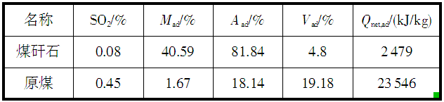 表2 煤矸石和原煤(無煙煤與煙煤比例為1∶1)的工業分析