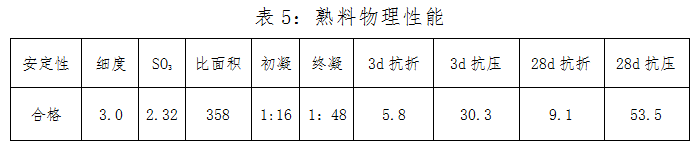 以電石渣為主要原料煅燒所得熟料化學成分見表3,礦物組成見表4,熟料物理性能見表5。