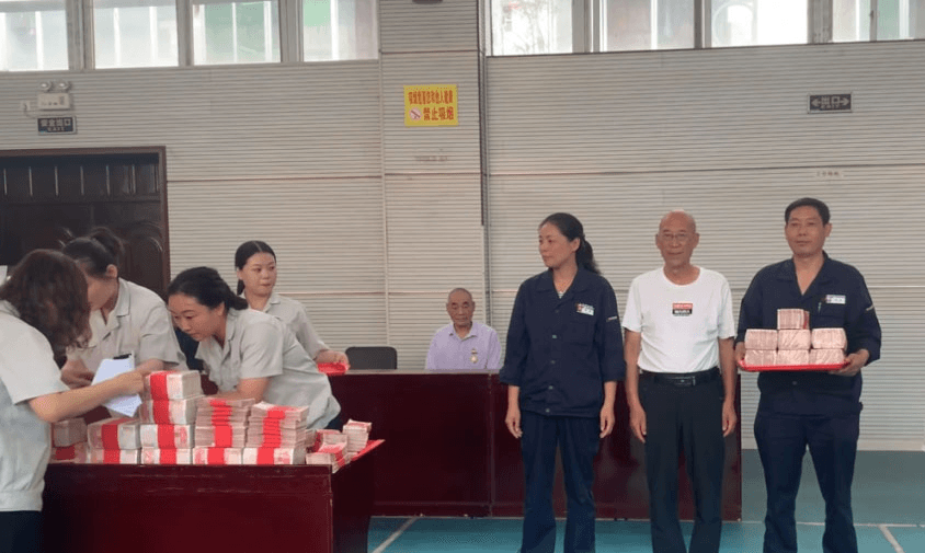 7月26日上午,略鋼公司主席臺上碼滿了百元大鈔,這是公司7月份實現盈利后兌現給職工的獎勵。