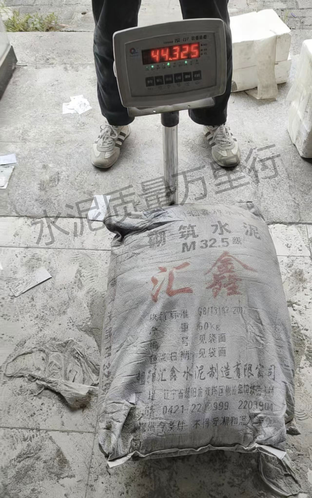根據國家標準GB175-2023《通用硅酸鹽水泥》及GB/T3183-2017《砌筑水泥》相關規定,包裝水泥標稱重量為50kg,實測重量需達到標稱重量的99%(即49.5kg)才算合格。但此次抽檢結果顯示,30個批次的水泥未達到這一基礎要求,占總抽檢量的48.4%,意味著近半數流通水泥存在“缺斤短兩”問題。其中,28批次水泥實測袋重不足49.3kg,朝陽匯鑫水泥制造有限公司生產的“匯鑫牌”砌筑水泥M32.5問題最為嚴重,實測袋重僅44.325kg,較標準重量缺少5.175kg(少10斤多),相當于消費者每購買10袋水泥,就有1袋“憑空消失”。
