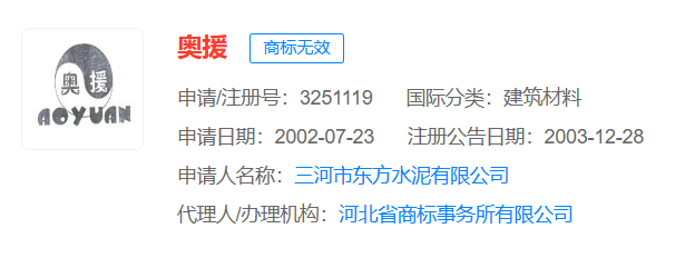 在梳理抽檢信息時發現,部分不合格企業還存在資質與商標使用不規范問題,涉嫌違反相關管理規定。烏拉蓋管理區東方水泥制造有限公司成為典型案例。該企業生產的“奧援”牌礦渣硅酸鹽水泥(P.S.A42.5),不僅氯離子檢測不合格,還存在雙重違規:一是生產許可證編號“XK08-001-006057”已處于注銷狀態,企業雖已申請新證“(蒙)XK08-001-00159”,但產品包裝未及時更新標注;二是所使用的“奧援”商標,實際歸屬三河市東方水泥有限公司,且當前商標狀態為“無效”,涉嫌違規使用他人失效商標。